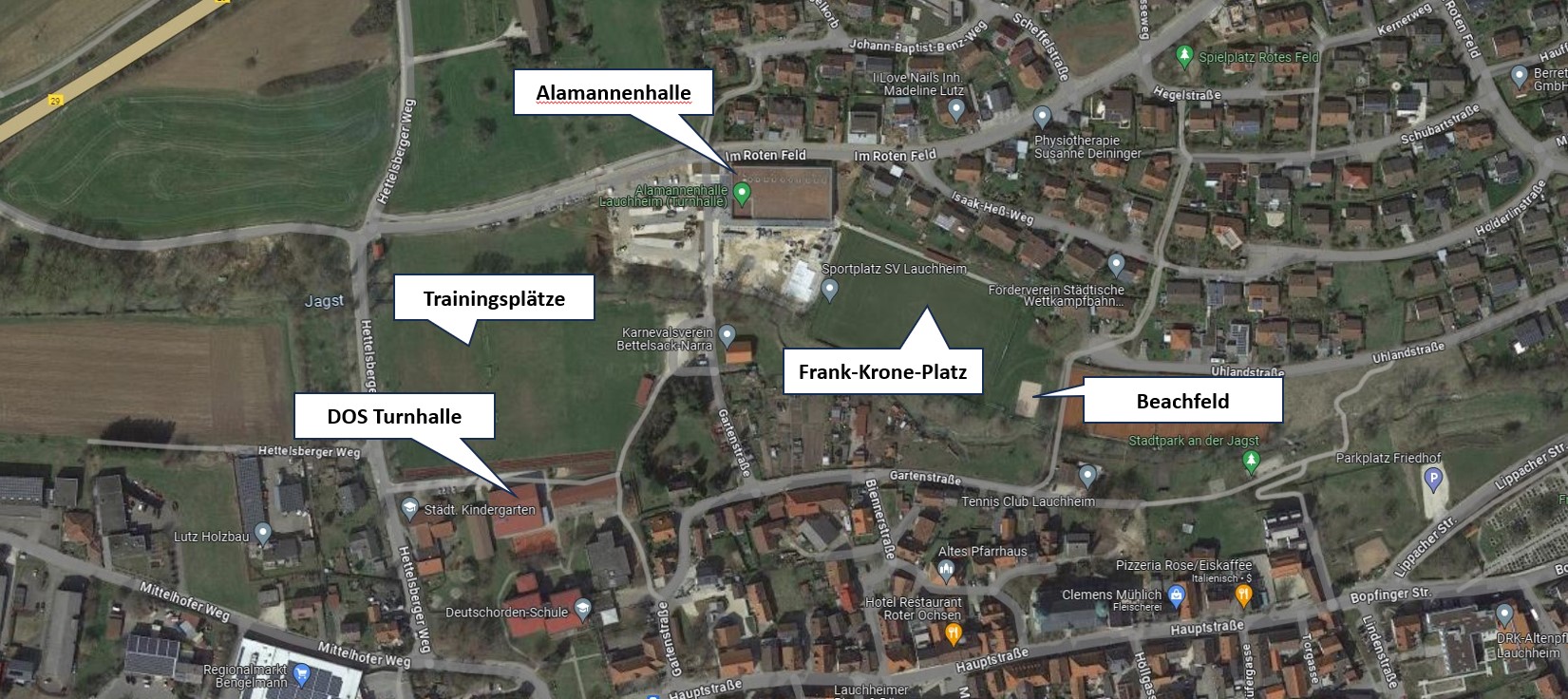 Das zusammenhängende SVL-Sportareal an der Jagst: Fußball auf dem Frank-Krone-Platz und den Trainingsplätzen zwischen Schulturnhalle und Jagst.